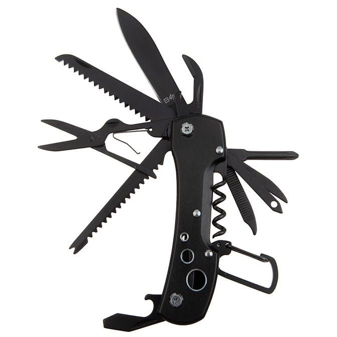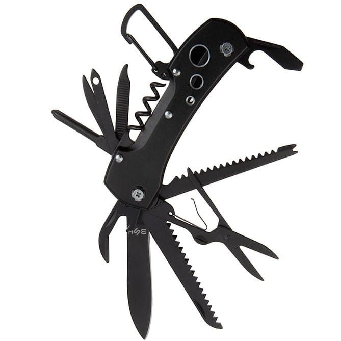 Ten niewielki scyzoryk skrywa aż 14 funkcjonalnych narzędzi takich jak: nóż, piła, skrobak do ryb, otwieracze do puszek i butelek, śrubokręty itp.