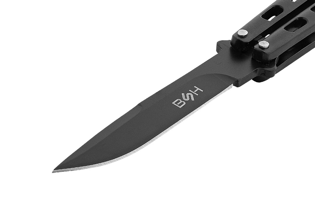 Cały nóż motylkowy został pokryty czarną oksydą, która świetnie wygląda i niweluje efekt odblasku.