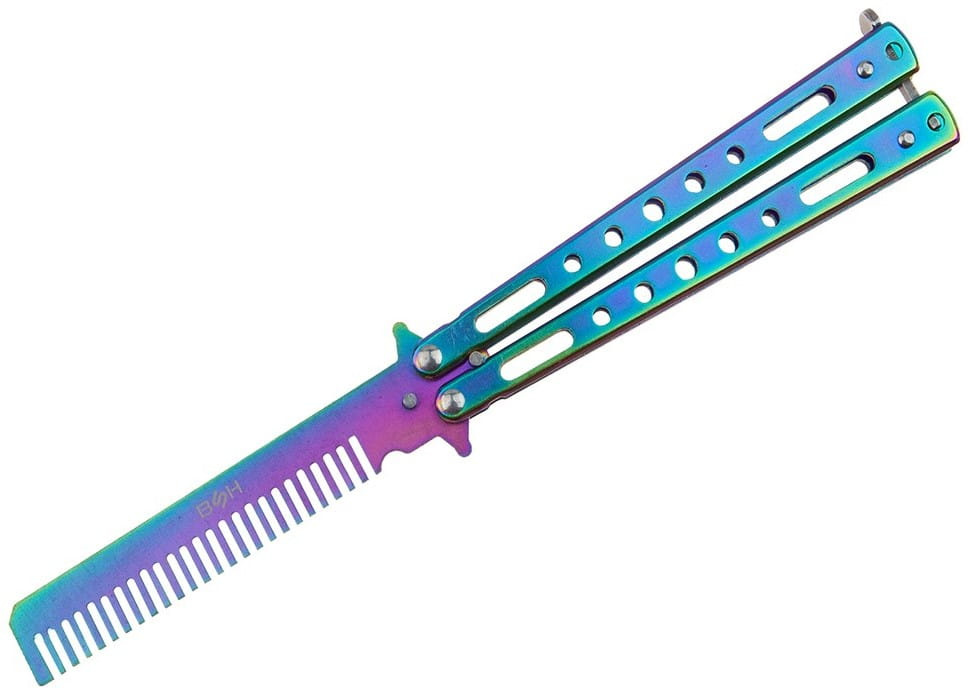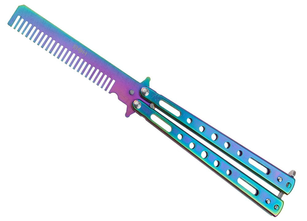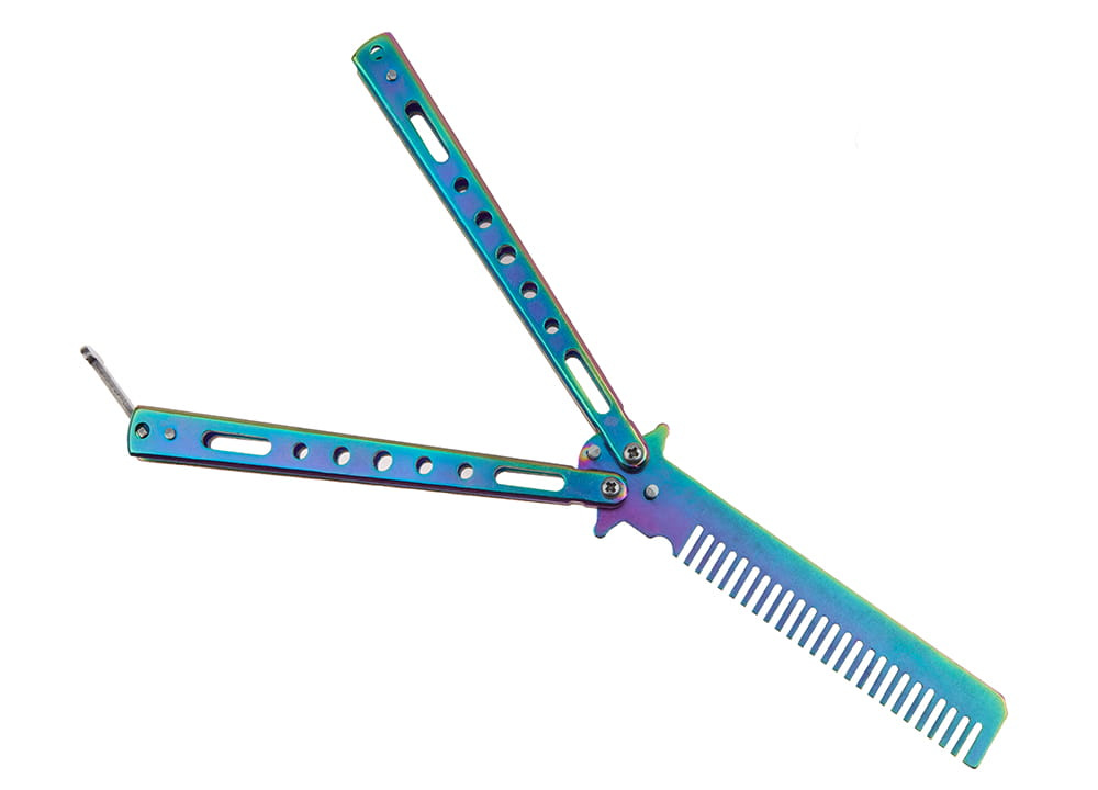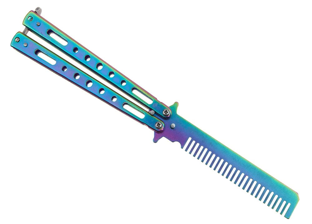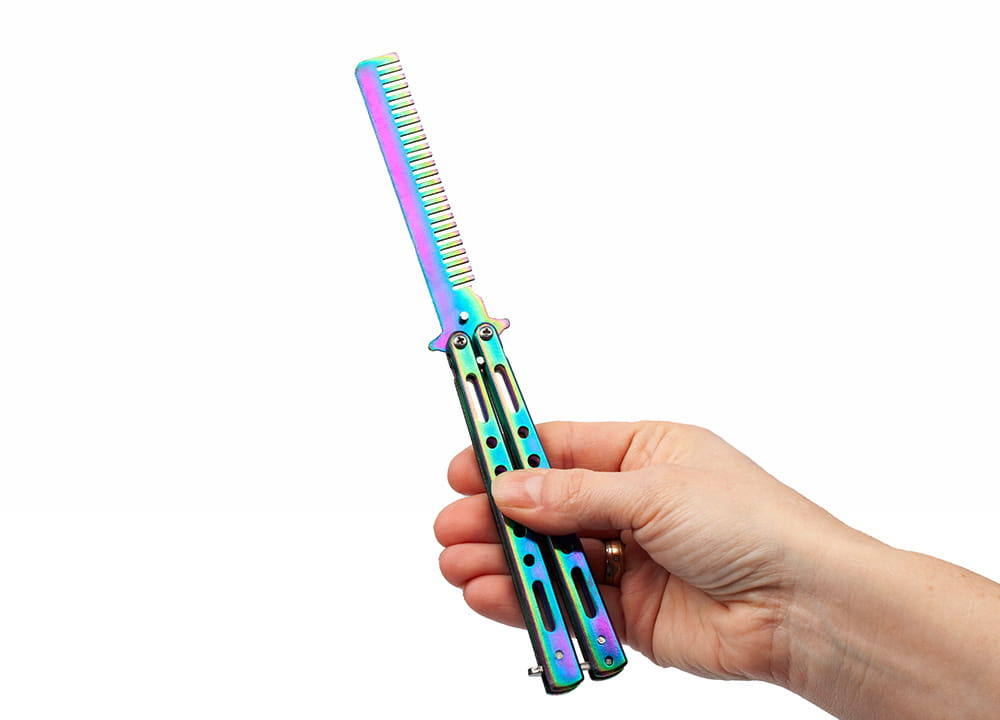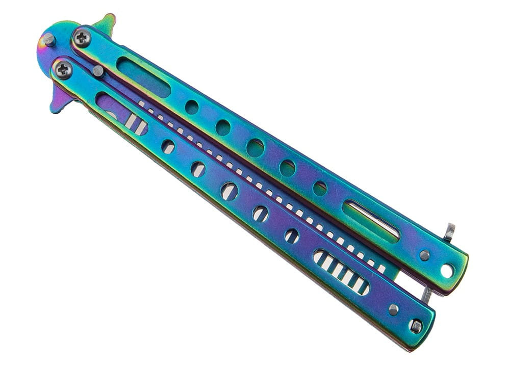 Treningowy nóż motylkowy to bezpieczne narzędzie w obłędnym kolorze Rainbow Fade.