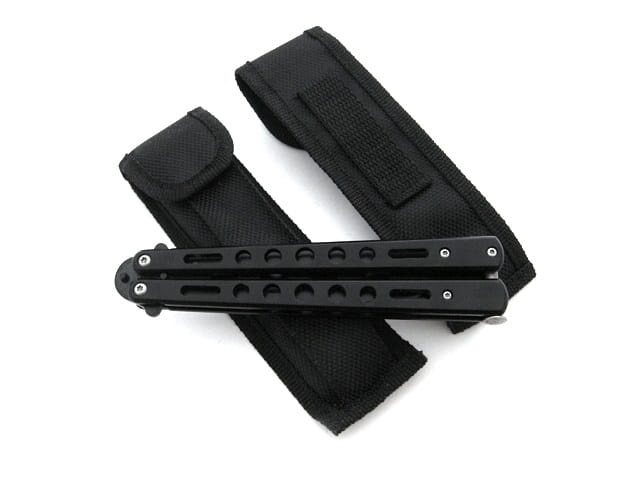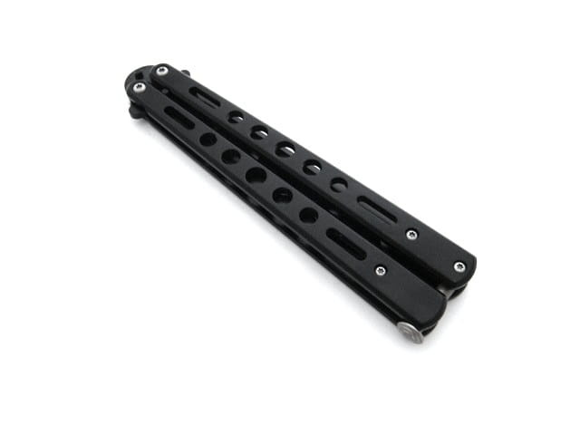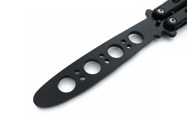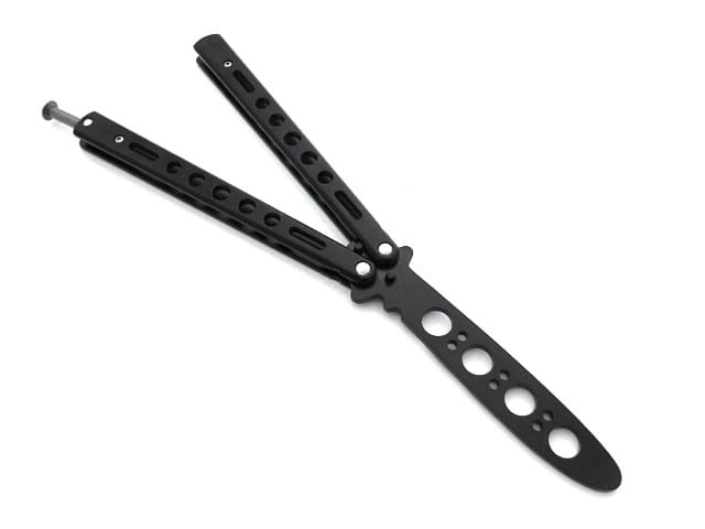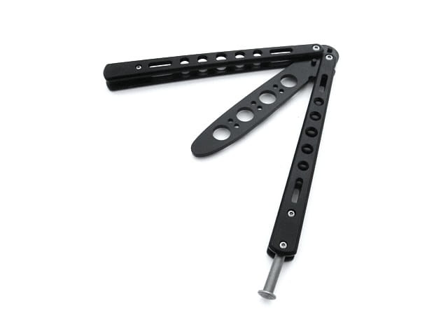 Motylek treningowy posiada blokadę typu latch, która chroni zamknięty nóż przed otwarciem, a otwarty przed niepożądanym schowaniem się ostrza.