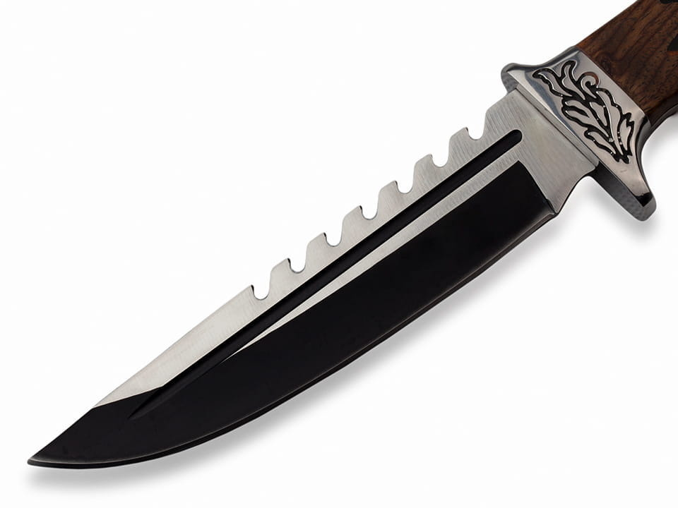 Głownia została wyposażona w uniwersalną piłę znajdującą się na jej grzbiecie.