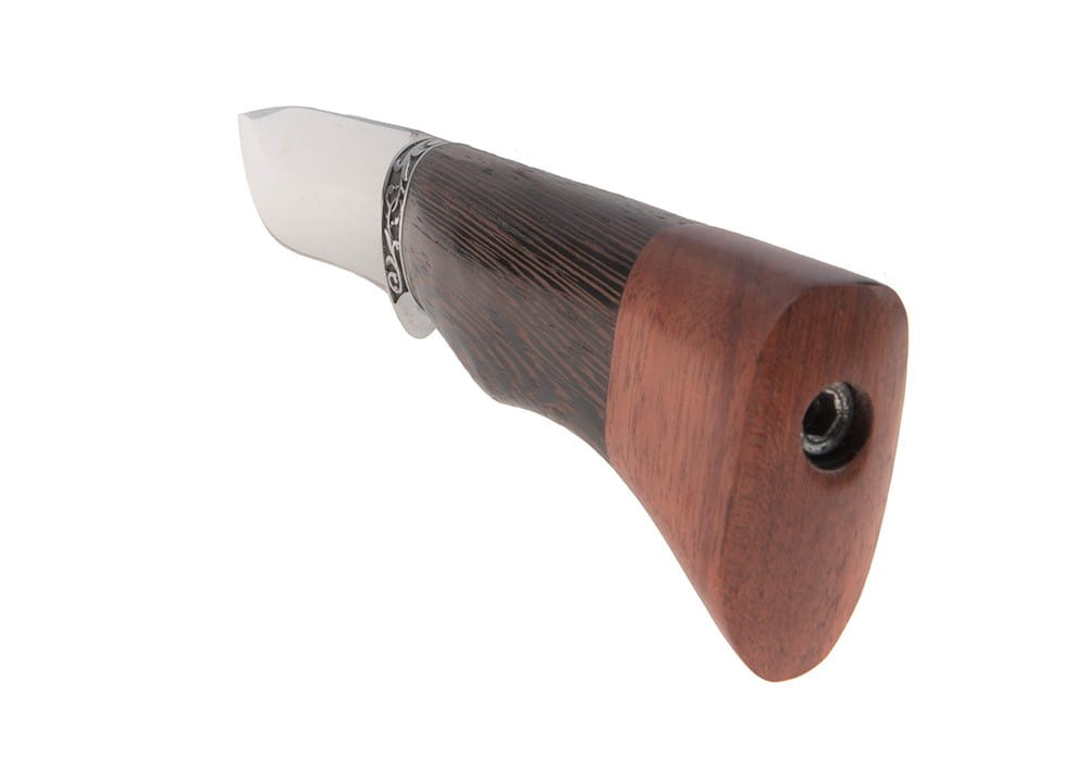 Ergonomicznie profilowana rękojeść została wykonana z drewnianych okładzin.