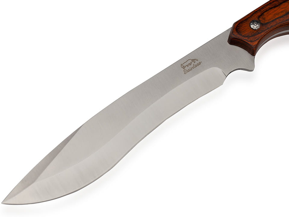 Długa głownia o profilu wzorowanym na maczetach kukri wykonana została z najlepszej stali nierdzewnej typu 420