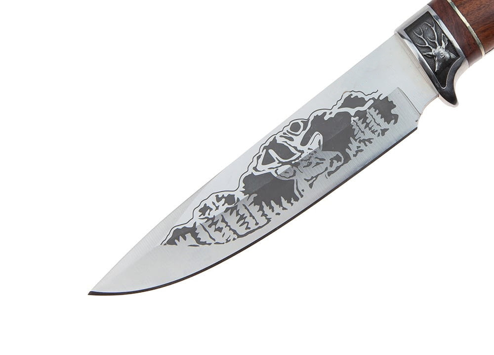 Głownia jest obustronnie zdobiona w wizerunek jelenia na rykowisku.