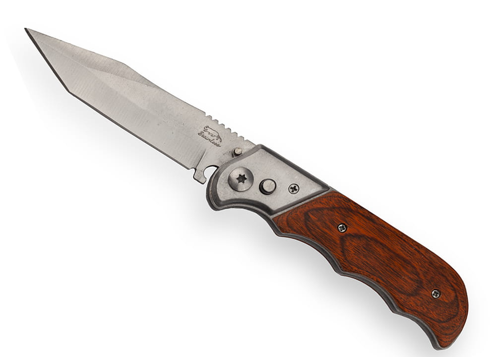 Nóż sprężynowy N-507B to skuteczne narzędzie o agresywnym wyglądzie.