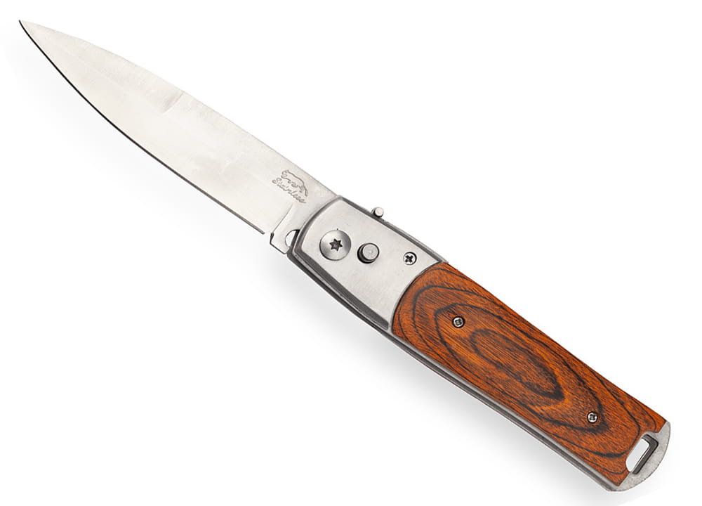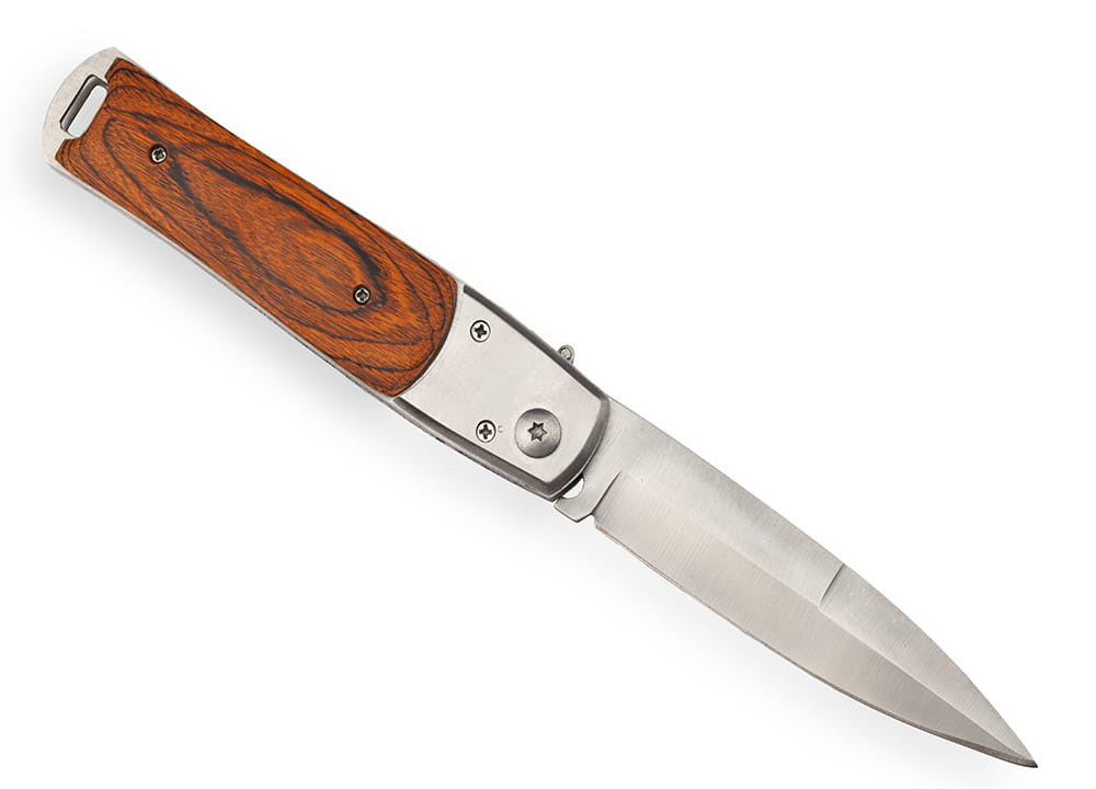Duży nóż sprężynowy o ekspresowym otwieraniu.