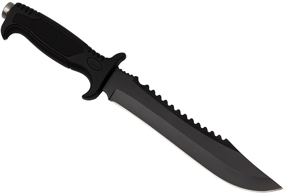 Materiał został dodatkowo pokryty czarną powłoką ochronną, która skutecznie niweluje efekt odblasku oraz chroni nóż przed korozją.