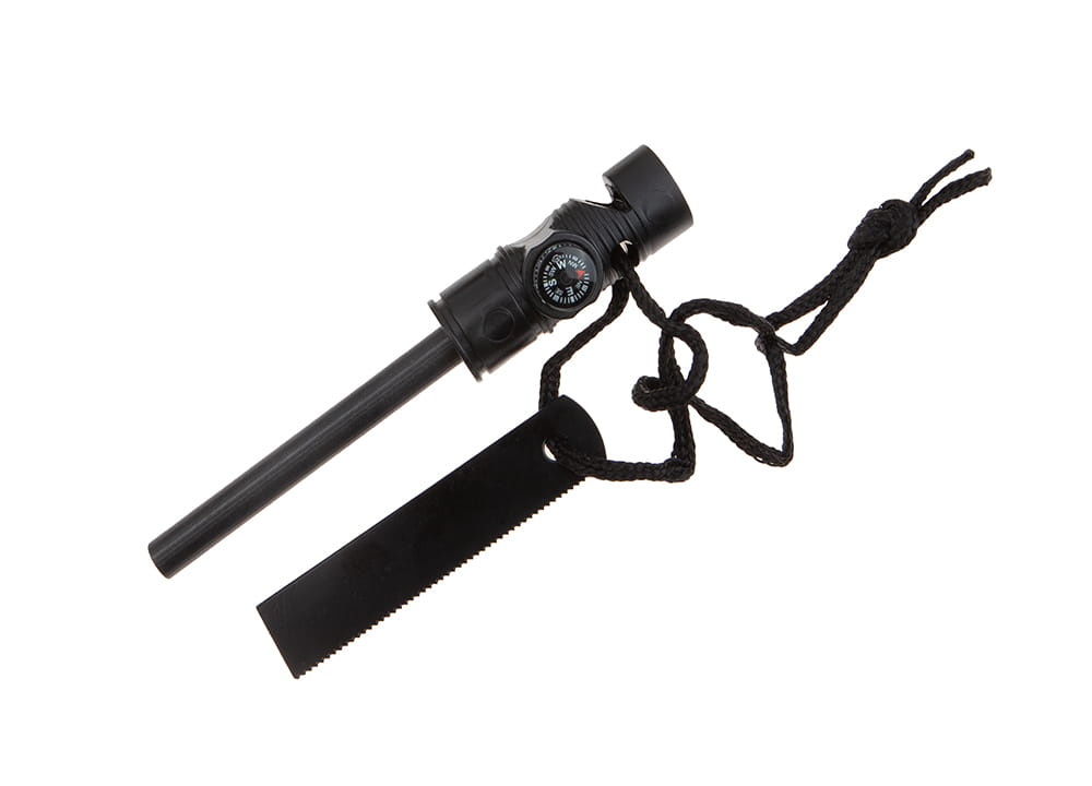 W zestawie z nożem znajduje się kabura oraz funkcjonalne krzesiwo XXL z gwizdkiem.