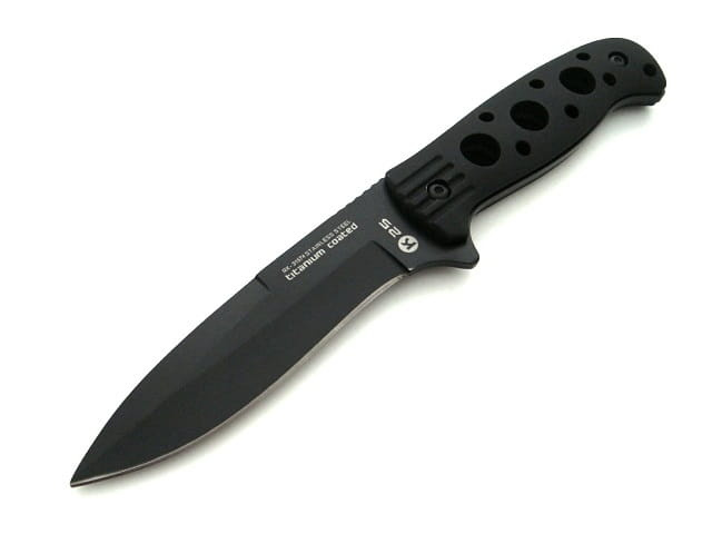 Materiał został pokryty czarną powłoką tytanową (titanium coated), która minimalizuje tarcie, zużywanie się materiału oraz proces tępienia.