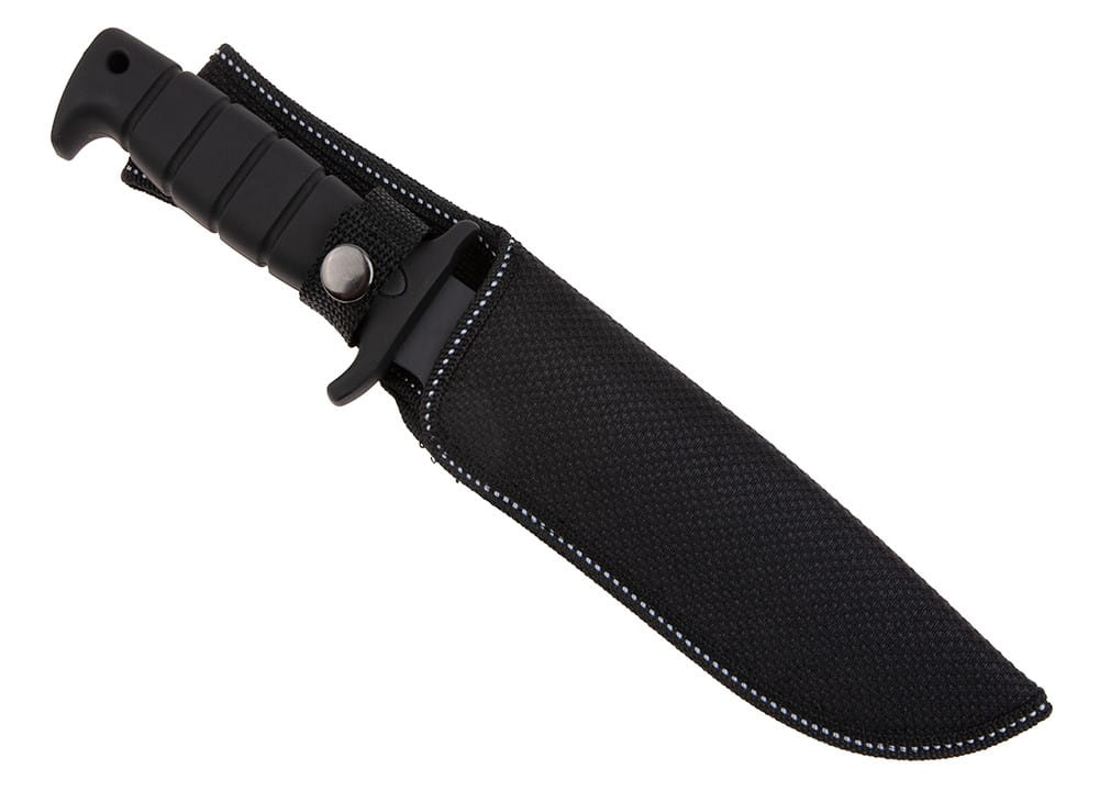 Nóż N-296 posiada w zestawie klasyczną, czarną kaburę z możliwością przymocowania jej do paska spodni.