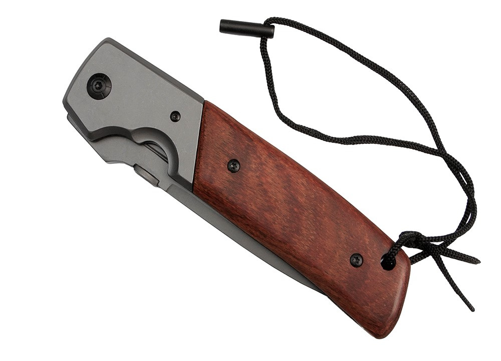 Nóż posiada sznurek dzięki któremu, łatwiej będzie nim operować i trudniej będzie go zgubić w warunkach plenerowych.