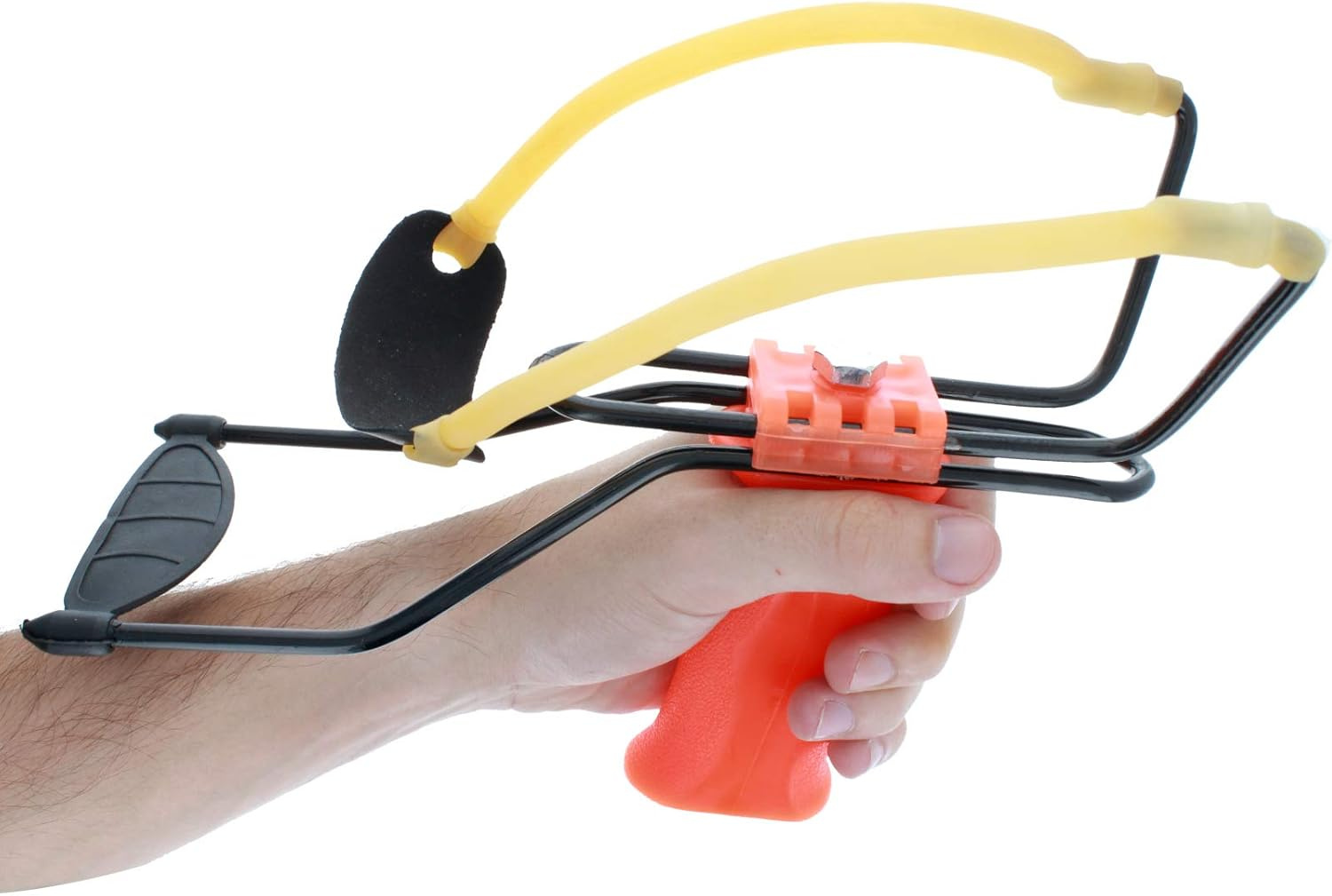 Ergonomiczna rękojeść zapewnia wygodny chwyt, a elastyczna guma lateksowa gwarantuje bezpieczny naciąg i dynamiczne strzały.