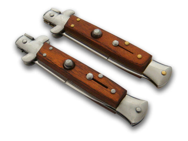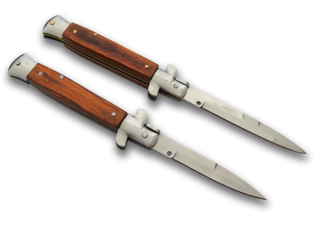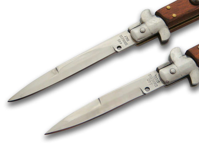 Zestaw dwóch klasycznych noży sprężynowych wzorowanych na kultowych, włoskich “sycylijkach”.