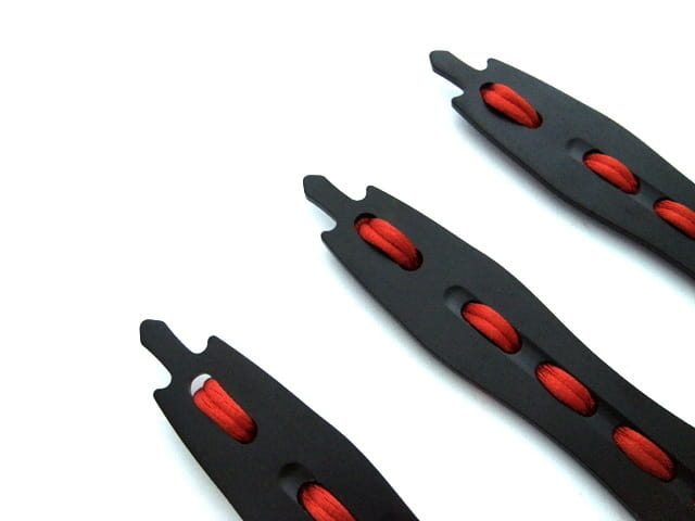 Niewielka rękojeść z czerwonym oplotem, świetnie trzyma się ręki, pozwala na precyzyjne rzuty zapobiegając ewentualnym poślizgom.