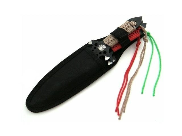 Rękojeść opleciona została linką paracord w trzech różnych kolorach, świetnie trzyma się ręki i pozwala na pewny rzut.