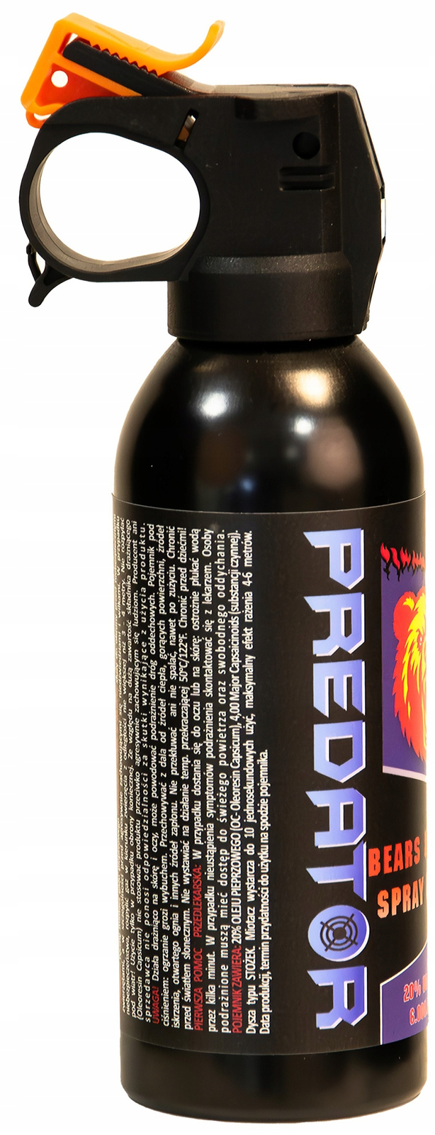 PREDATOR 330 ml to jeden z najmocniejszych dostępnych na polskim rynku miotaczy gazu pieprzowego, zaprojektowany z myślą o skutecznej obronie przed agresywnymi zwierzętami, takimi jak niedźwiedzie, dziki, wilki czy zdziczałe psy.