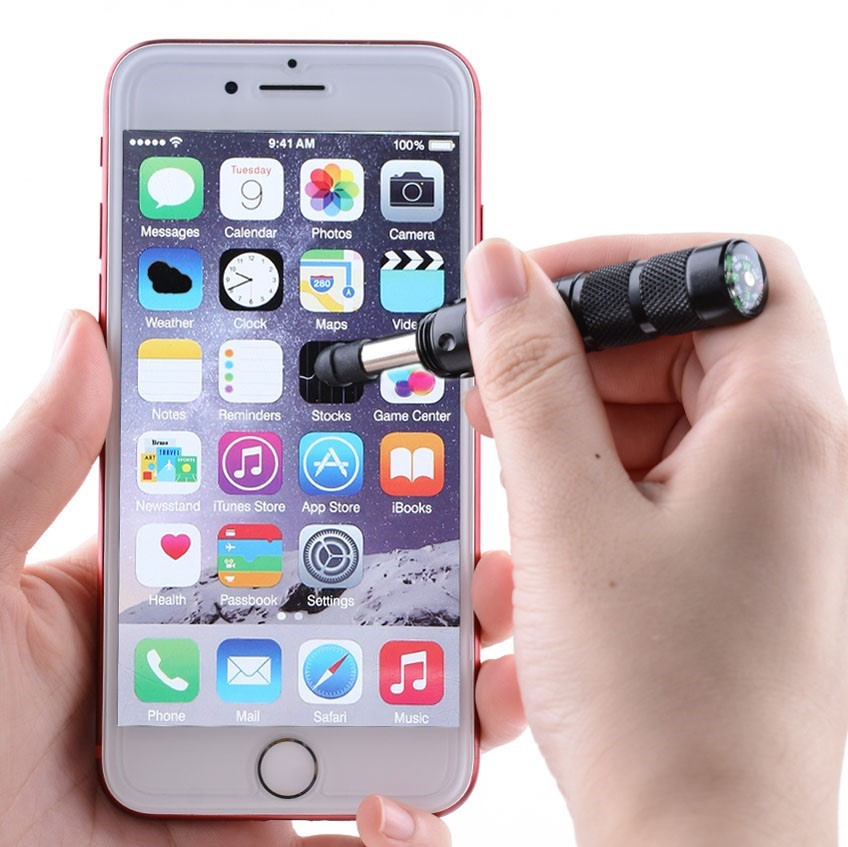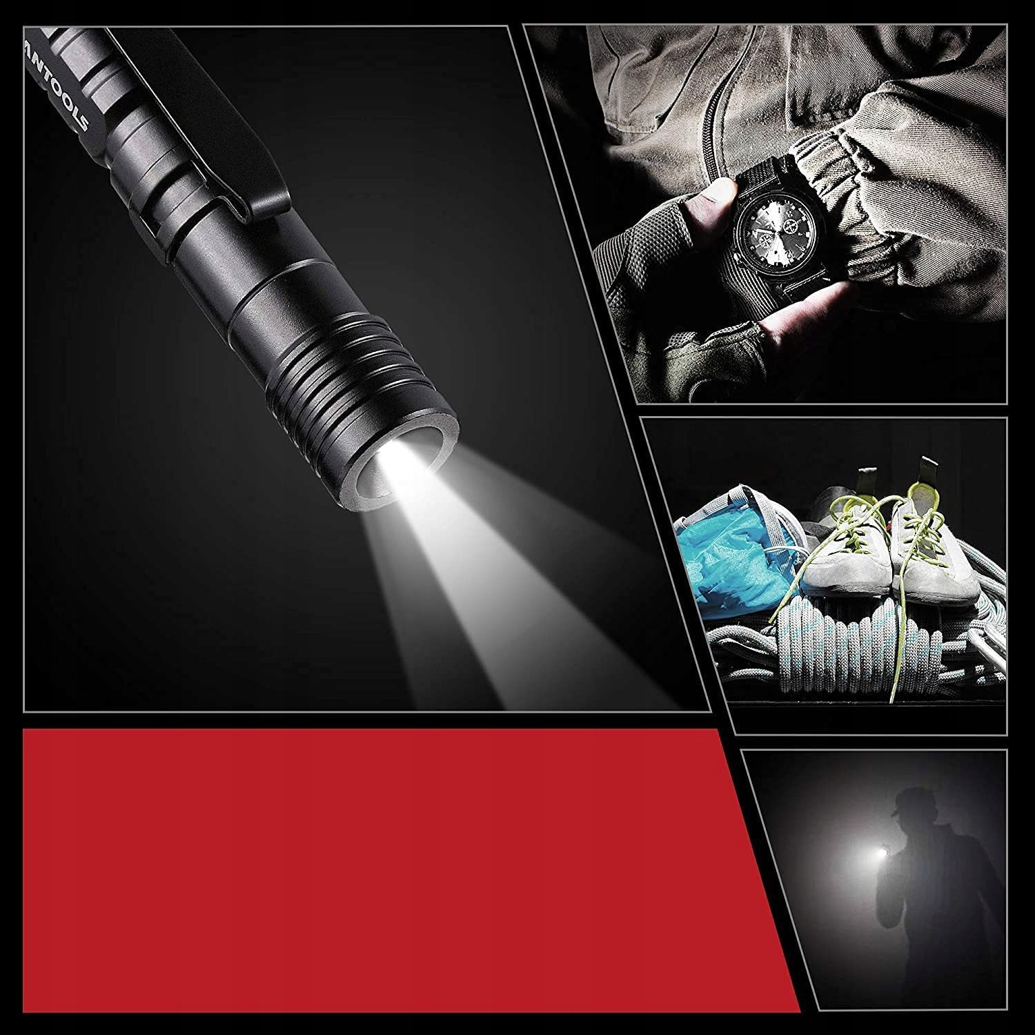 Na jednym końcu znajduje się mocna latarka LED posiadająca dwa tryby świecenia.