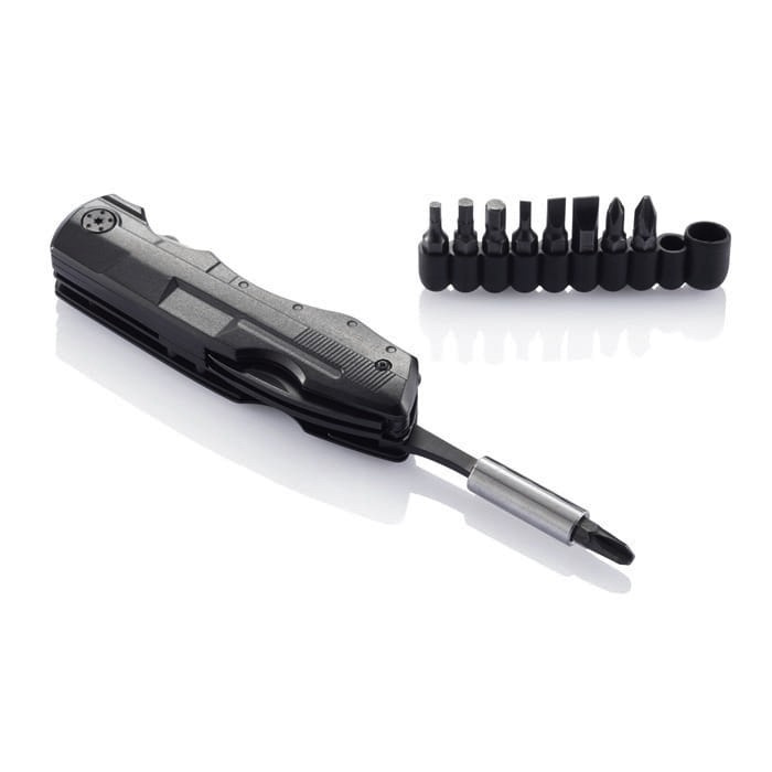 Multitool posiada aż 17 funkcji w tym między innymi nóż, kombinerki, śrubokręty i otwieracze do puszek oraz butelek.