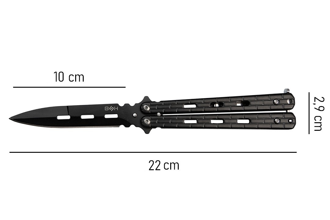 Nóż motylkowy dzięki specjalnemu ażurowaniu i wyważeniu posiada rewelacyjne właściwości aerodynamiczne.