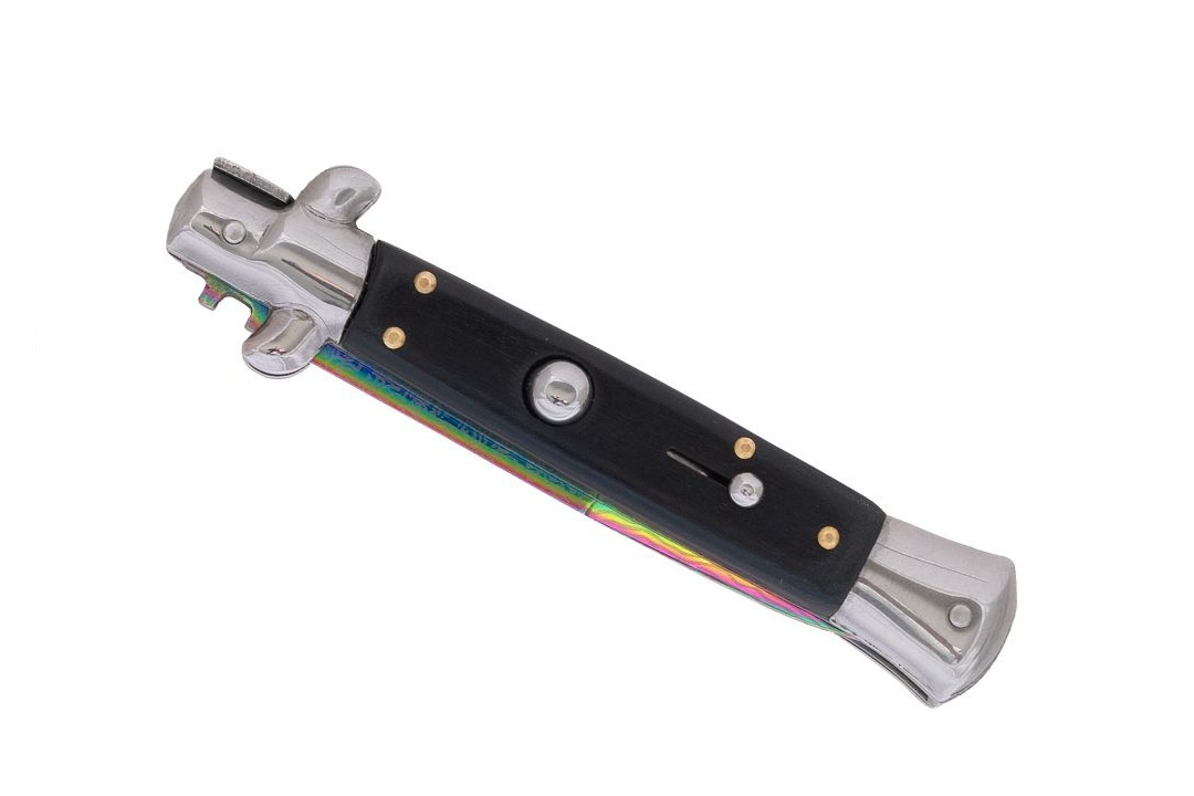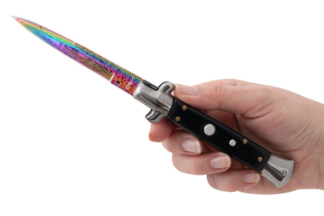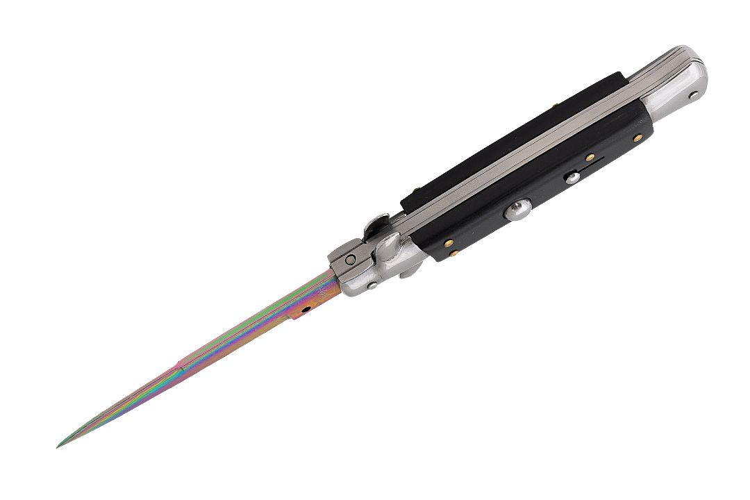 Błyskawiczny nóż sprężynowy wzorowany na klasycznych, włoskich sycylijkach.