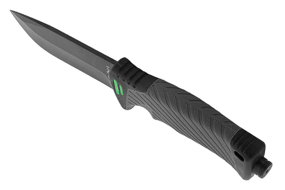 Jego głownia o profilu drop point, pokryta dodatkową czarną powłoką ochronną, eliminuje odblaski oraz wzmacnia odporność na korozję, co czyni go wyjątkowo praktycznym w różnych środowiskach.