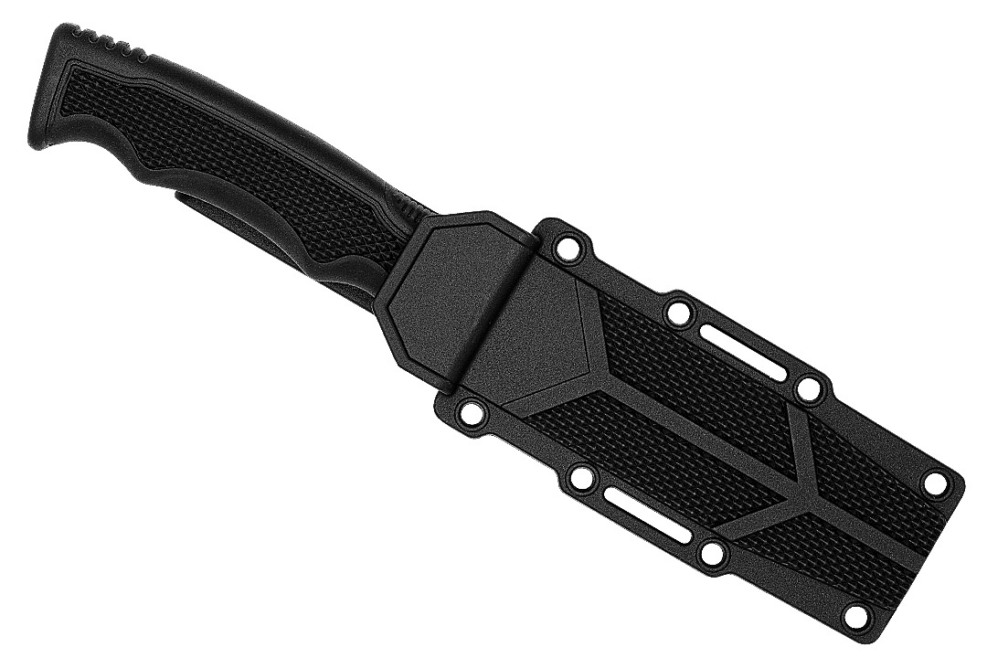 W zestawie znajduje się klasyczny, czarny pokrowiec z wytrzymałego materiału, który można przymocować do paska spodni, dzięki czemu nóż jest zawsze pod ręką, gotowy do natychmiastowego użycia.