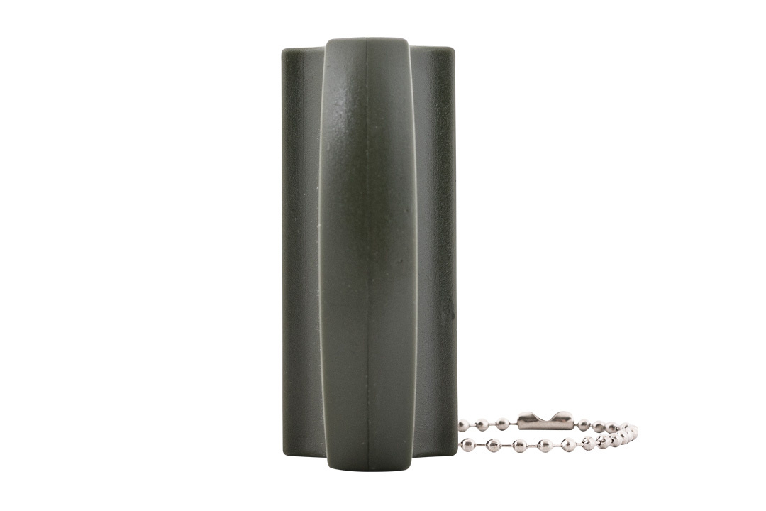 Ostrzałkę wyposażono w mocny łańcuszek, który umożliwia przyczepienie jej w dogodnym miejscu, zapobiegając jej zgubieniu.