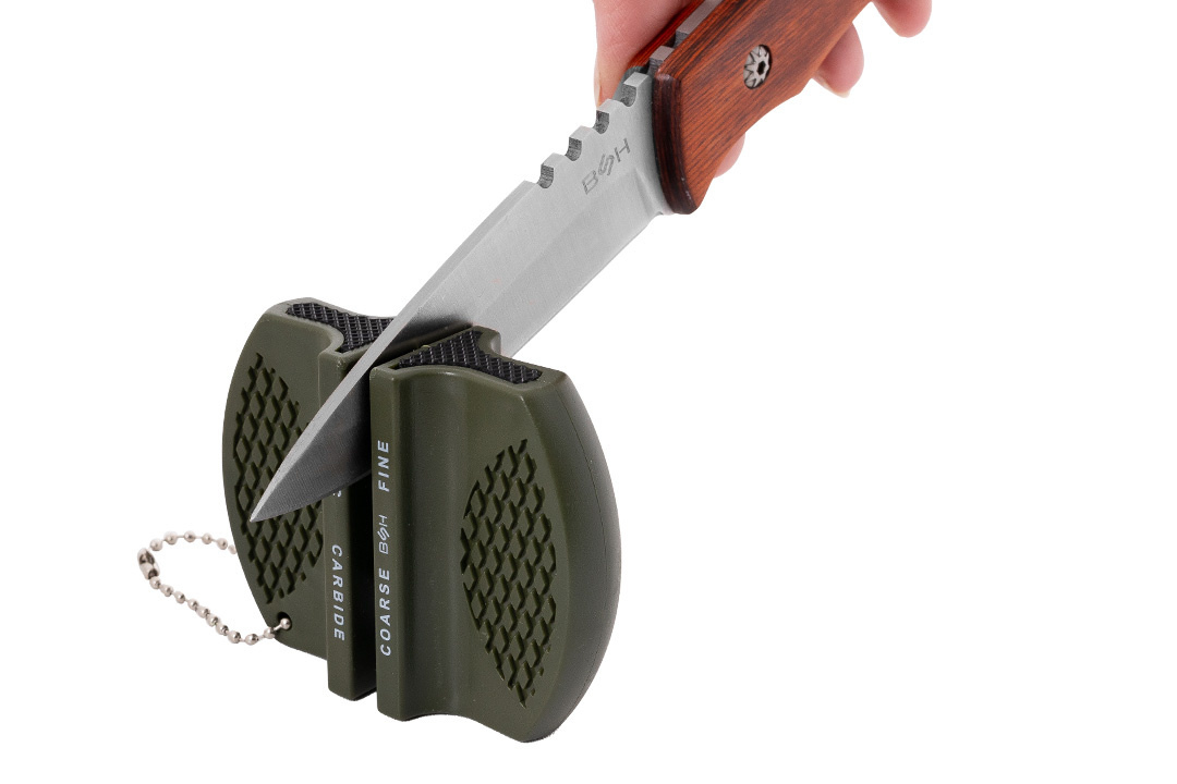Ostrzałka marki BSH Adventure w kolorze army green to kompaktowe, dwustopniowe urządzenie, które idealnie sprawdzi się w ostrzeniu noży, tasaków, maczet oraz innych ostrzy o grubości nieprzekraczającej 5 mm.