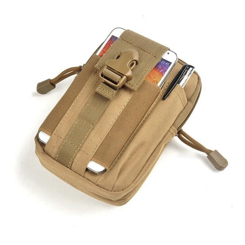 Niezwykle użyteczna saszetka taktyczna w kolorze sand z miejscem na telefon komórkowy.