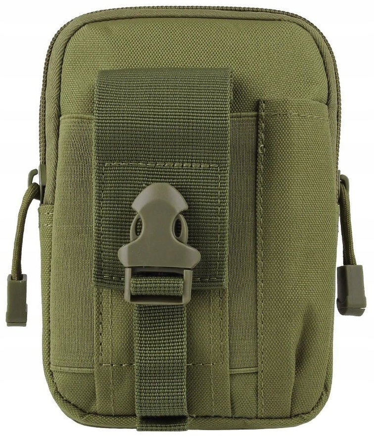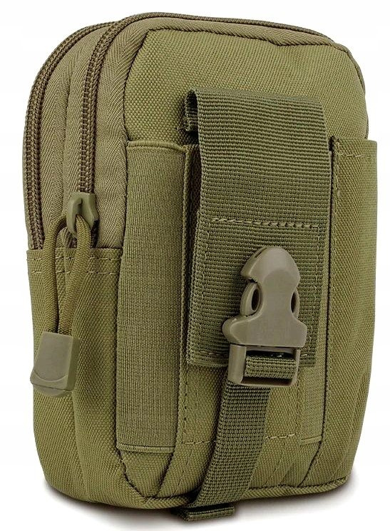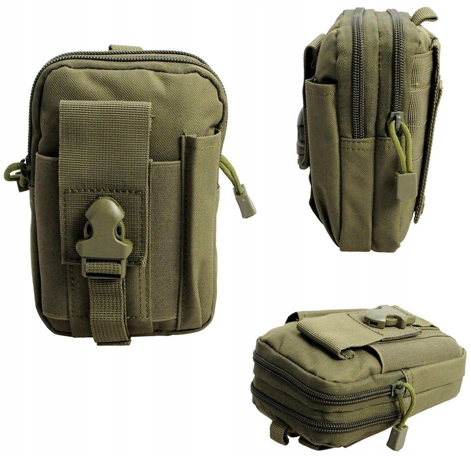 Niezwykle użyteczna saszetka taktyczna w kolorze zielonym z miejscem na telefon komórkowy.