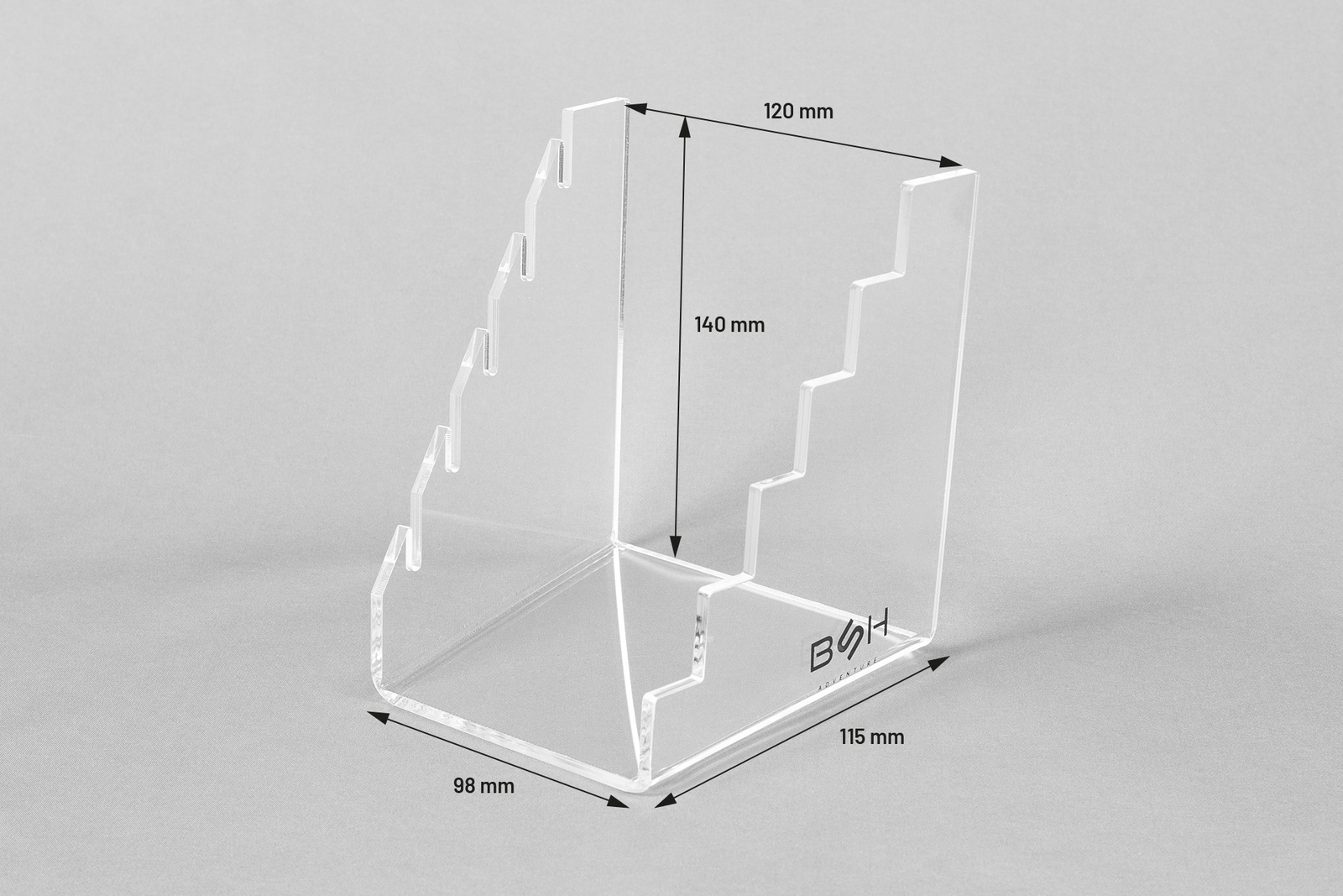 Każdy egzemplarz przed wysyłką zabezpieczony jest folią ochronną – po jej usunięciu stojak zyskuje pełną przezroczystość i gotowość do ekspozycji.