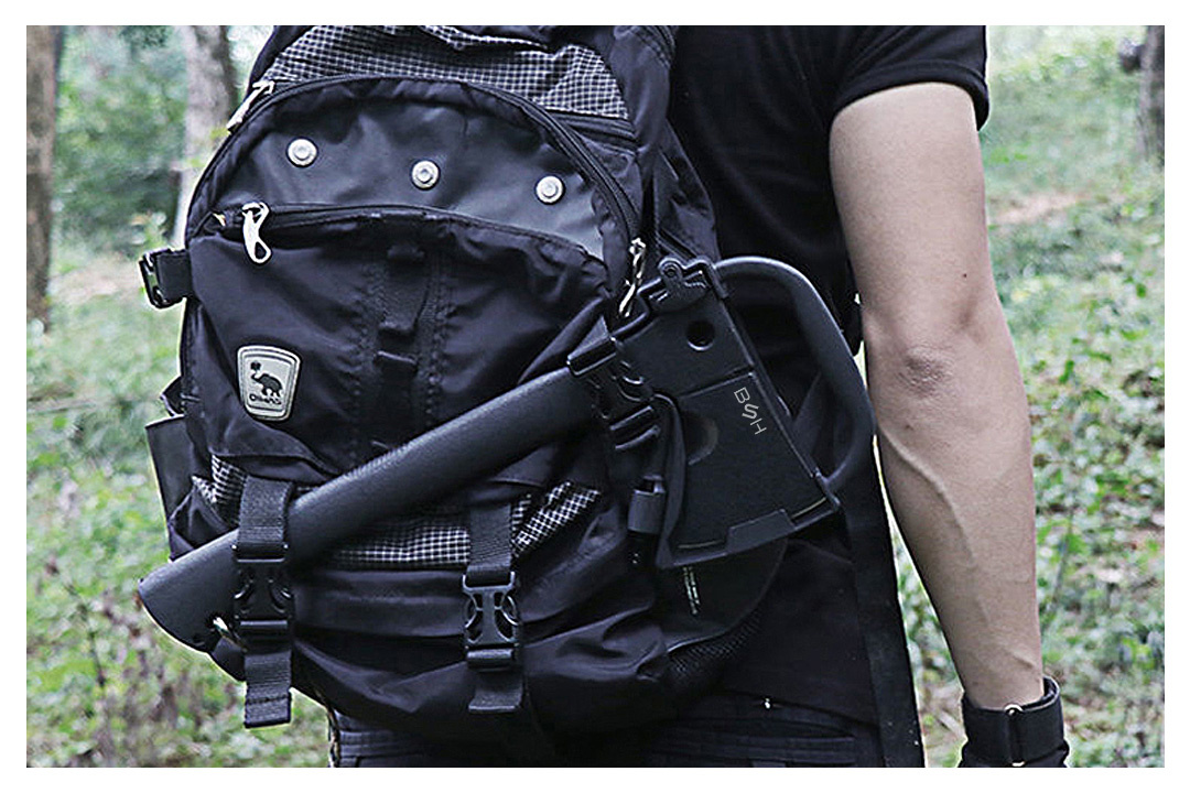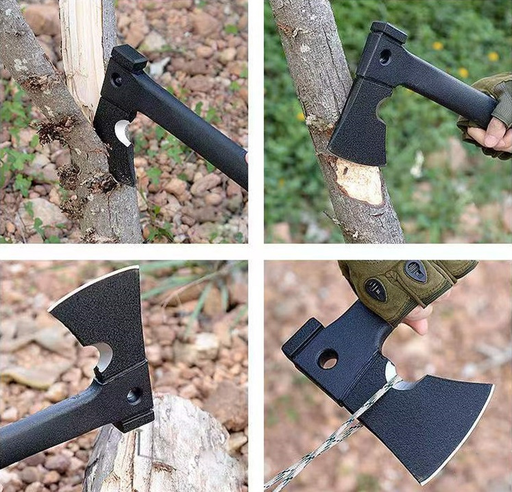 Ta praktyczna, czarna siekiera łączy funkcjonalność z wszechstronnością, idealnie sprawdzając się pod namiotem, na działce lub podczas obozowania.